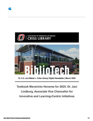 Criss Libraries' Digital Newsletter, BiblioTech, March 2025 Dr. C.C. and Mabel L. Criss Library, University of Nebraska at Omaha.