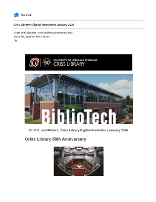 Criss Libraries' Digital Newsletter, BiblioTech, January 2026 Dr. C.C. and Mabel L. Criss Library, University of Nebraska at Omaha.
