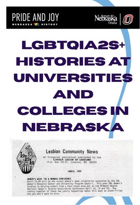 Universities and colleges have served as a space for community building, scholarship, and activism. This is no different for the LGBTQIA2S+ community in Nebraska. Colleges and universities provided space for groups to form, giving Nebraskan LGBTQIA2S+ students, faculty, staff, and allies avenues for collaboration, celebration, and activism. This zines highlights student experiences at UNO, but includes institutions across the state.